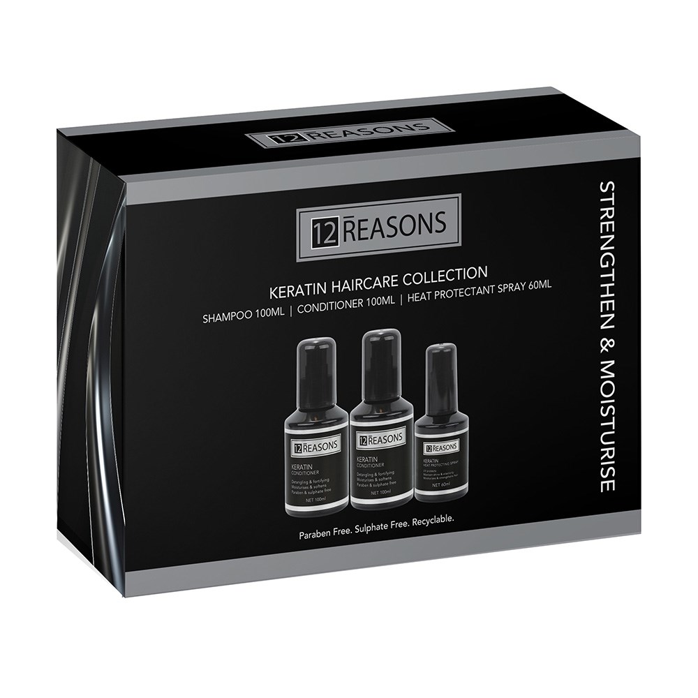 12Reasons Keratin Travel Pack makes travel absolutely gorgeous with three travel-sized products. Restore strength and renew shine while boosting nourishment. Hair is left fortified and repaired. Dry, damaged hair is transformed, shining with strength. Powered by keratin, macadamia oil and avocado oil for the best of nature. Free from parabens and sulphates. Colour-safe. Vegan. Not tested on animals. Designed and formulated in Australia.