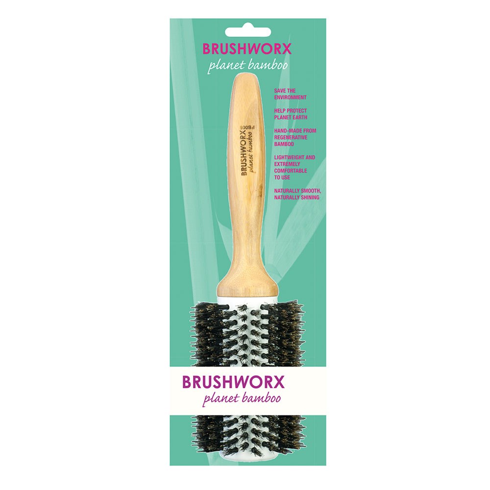 Help mother earth with Brushworx Planet Bamboo. Bamboo round hair brush has a multitude of ecological benefits. It’s a renewable, self regenerating resource which avoids the relentless destruction of our forests. Each brush assists in maintaining naturally smooth, naturally shiny hair whist protecting the environment at the same time!