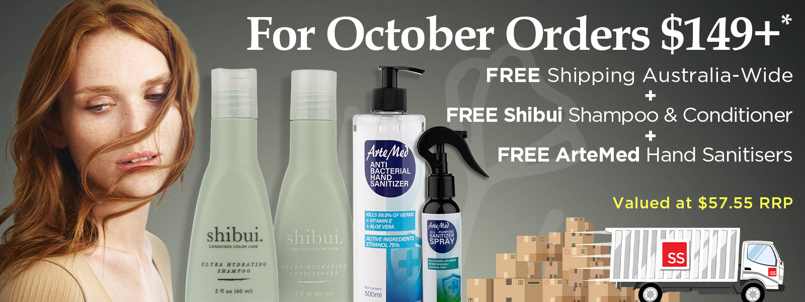 *Free shipping, 1 x Shibui Hydrating Shampoo 60mL, 1 x Shibui Hydrating Conditioner 60mL, 1 x ArteMed Hand Sanitiser 500mL & 1 x ArteMed Sanitiser Spray 120mL on orders $149+. Valued at $57.55 RRP. No code needed. Items automatically added to eligible orders. Valid October 2025 or whilst stocks last. No rainchecks. Salon Saver reserves the right to change or rescind this offer at any time.