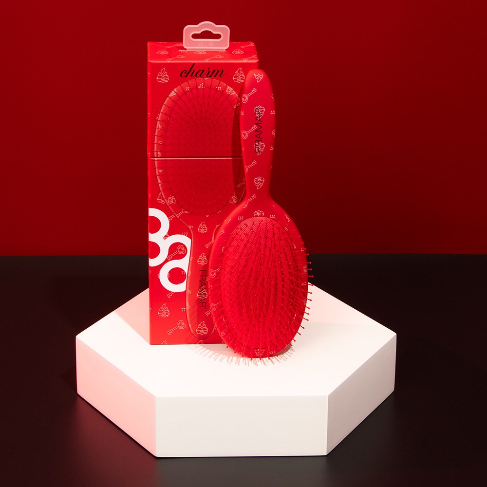 Your lucky charms for detangling! Framar Detangle Hair Brush Red Get Lucky in Charm is an adorable blend of playful design and serious detangling power. This brush effortlessly detangles wet or dry hair with ease. Ideal for all hair types, including wigs and hair extensions. Flexible bristles deliver pain-free brushing. Not only a detangler, this brush is also great at brushing colour or toner through hair for even application or assist in styling, such as brushing out curls.