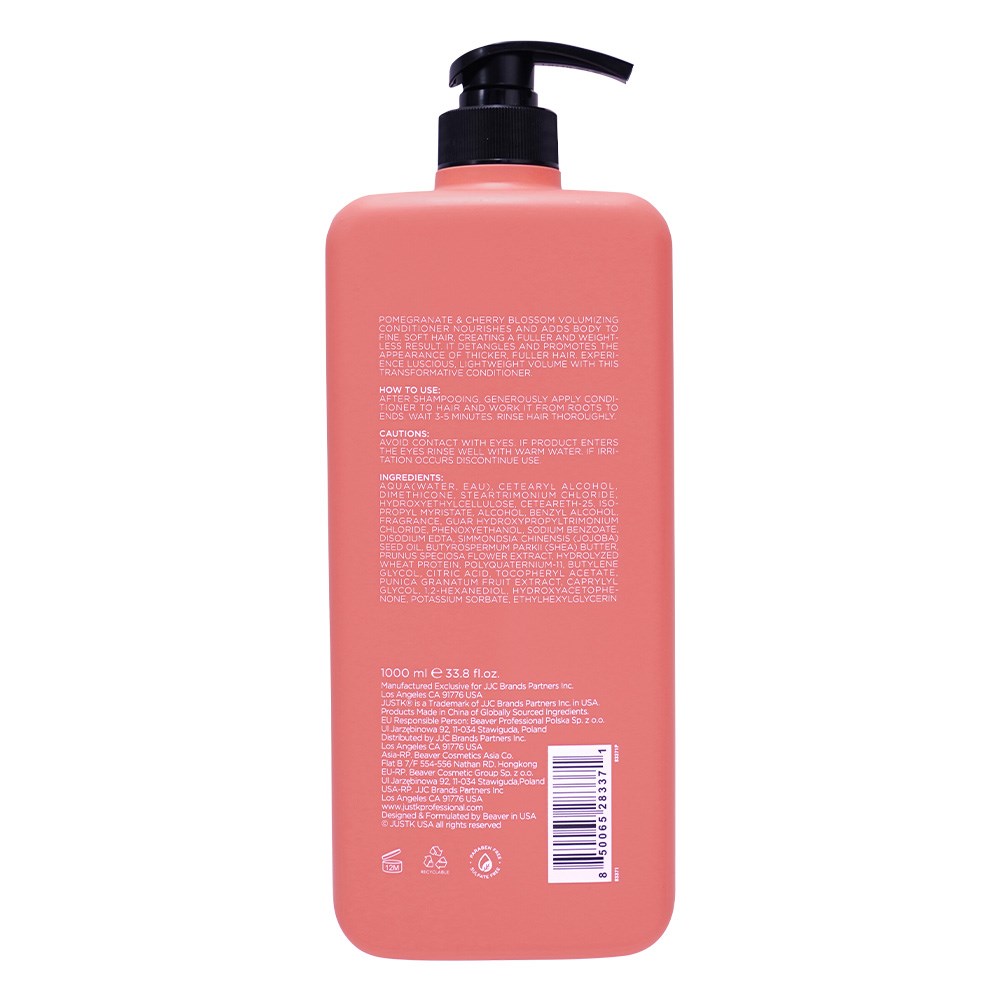 From woeful to wow, one wash at a time! Professional-grade formulas which solve all the problems of the hair rainbow. Select JustK Volumising Conditioner 1L for airy bounce and weightlessness. Infused with pomegranate and cherry blossom, this sulphate-free, paraben-free conditioner for fine hair creates the appearance of thicker, fuller hair. Detangle and nourish while promoting a lifted look. Amazing volume is affordable!