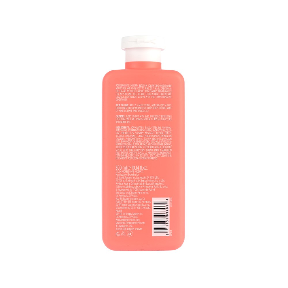 From woeful to wow, one wash at a time! Professional-grade formulas which solve all the problems of the hair rainbow. Select JustK Volumising Conditioner for airy bounce and weightlessness. Infused with pomegranate and cherry blossom, this sulphate-free, paraben-free conditioner for fine hair creates the appearance of thicker, fuller hair. Detangle and nourish while promoting a lifted look. Amazing volume is affordable!