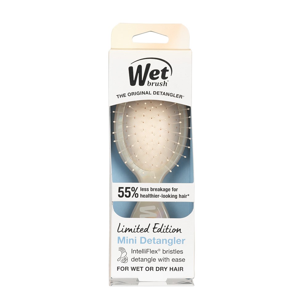 WetBrush Iridescence Icon Mini Detangler Cream turns detangling into an illuminating experience. Pearly hues with rainbow reflects to inspire. Mini iridescent icons of detangling.