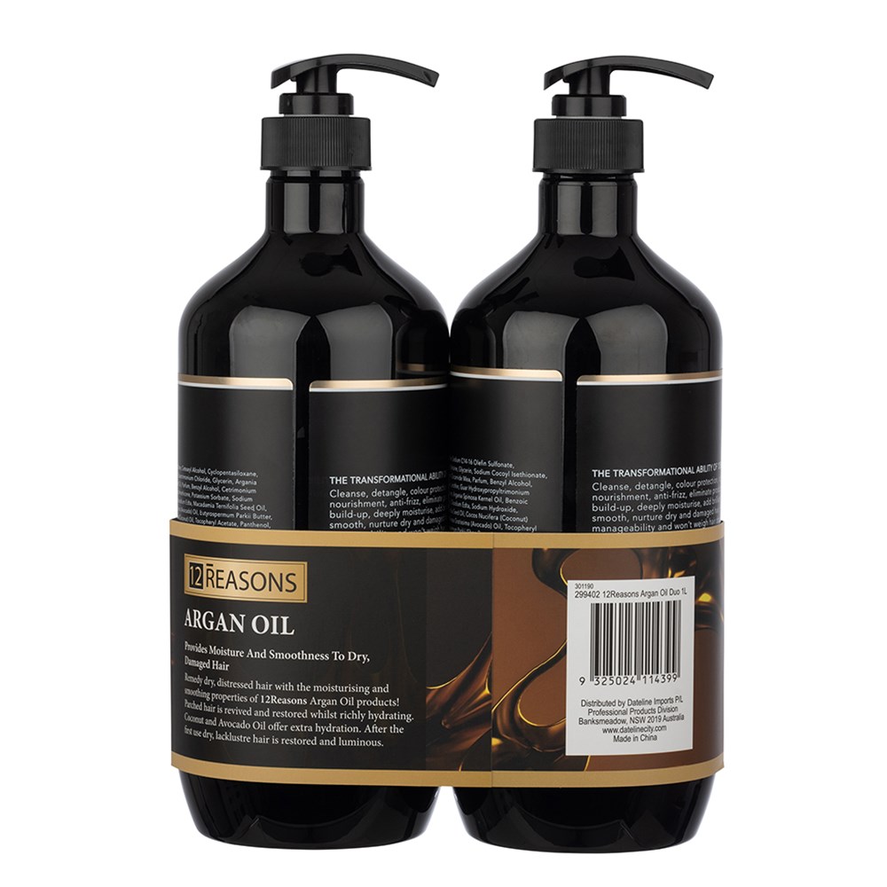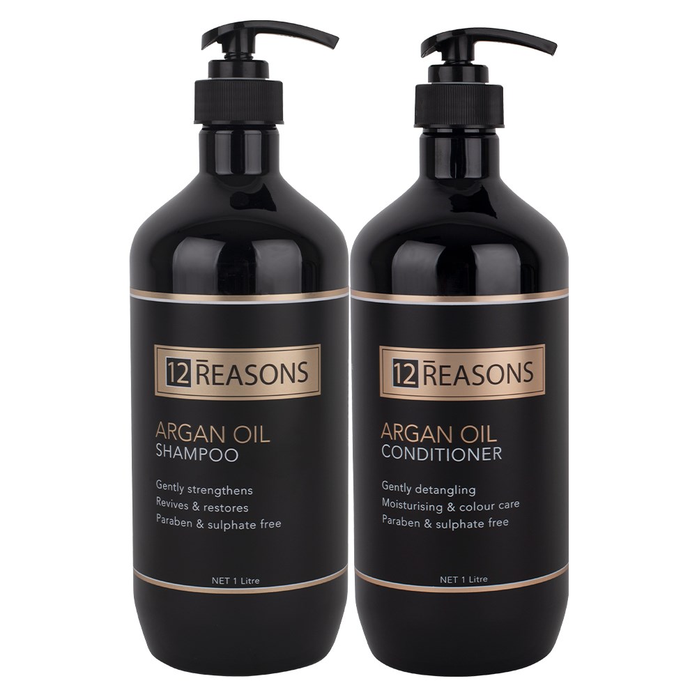 To Use: Apply 12Reasons Argan Oil Shampoo liberally to wet hair. Lather. Rinse. Follow with 12Reasons Argan Oil Conditioner by applying liberally from mid-shaft to ends. Condition. Rinse.