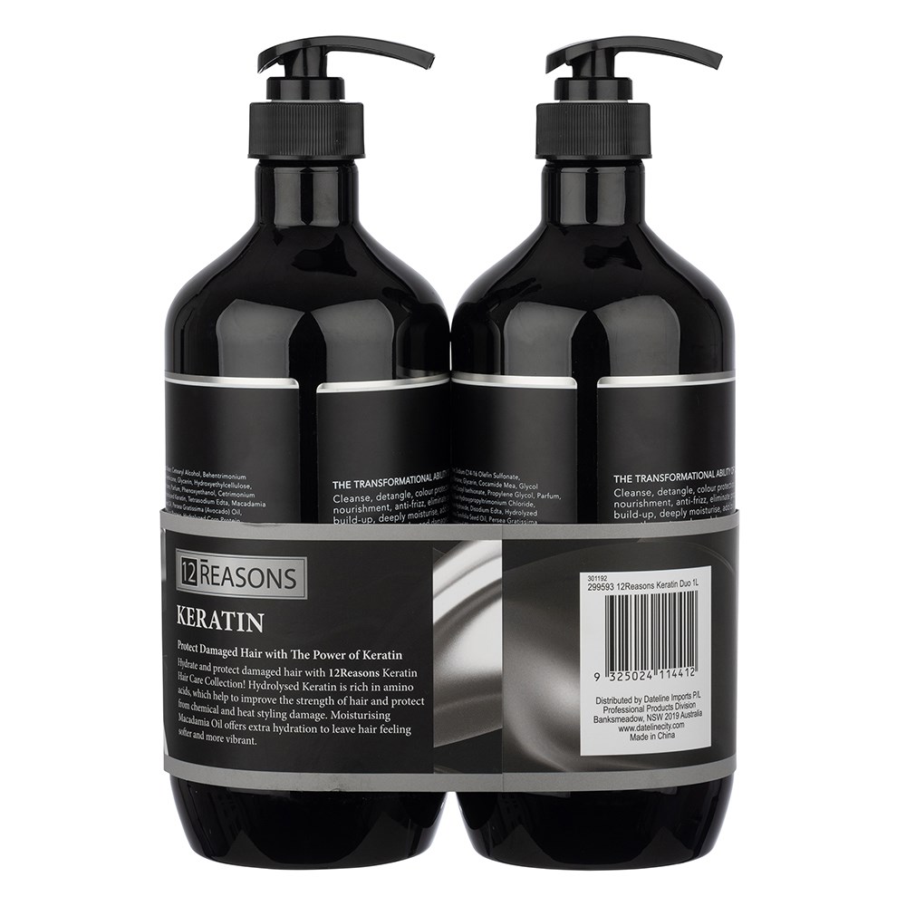 Ideal gift damaged and over processed hair. Banish breakage with the 12Reasons Keratin Oil Duo 1 Litre Sale Pack. Haircare formulated with Hydrolysed Keratin which is rich in Amino Acids to protect and fortify damaged hair. Macadamia Oil brings softness and shine back to dull and damaged hair. Hair is brought back to gorgeous health in no time.