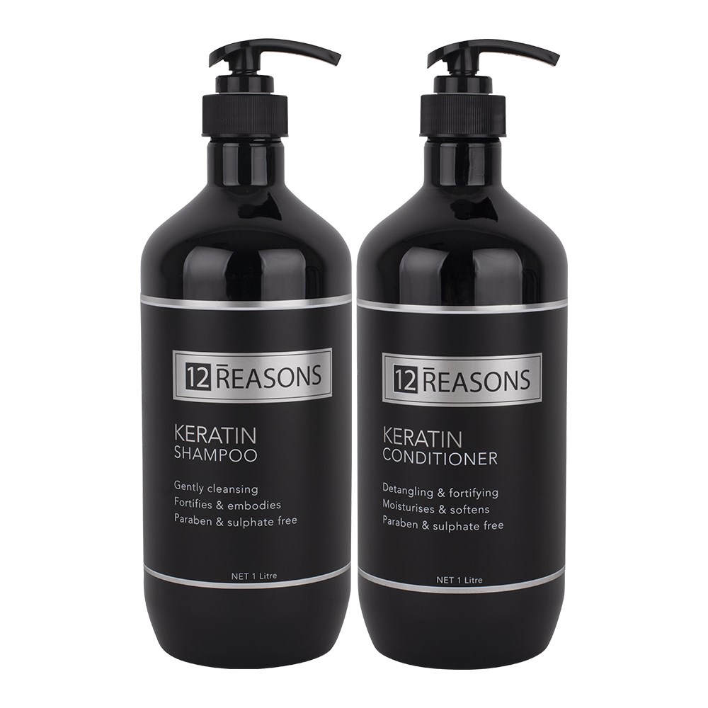 To Use: Apply 12Reasons Keratin Oil Shampoo liberally to wet hair. Lather. Rinse. Follow with 12Reasons Keratin Oil Conditioner by applying liberally from mid-shaft to ends. Condition. Rinse.