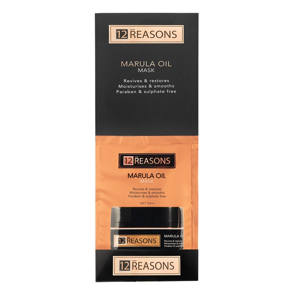 Boost add-on sales with 12Reasons Marula Oil Hair Treatment 12pc Display. Ideal for countertops, the display houses 12 x 50ml sachets. 12Reasons Marula Oil Hair Treatment beautifully hydrates and smooths dry, frizzy hair. Richly nourishing, hair is left smooth, silky and touchable. Fruit and seed oils enhance shine and softness. 12Reasons Marula Oil Hair Treatment brings smoothness back to frizzy hair in only seven minutes!