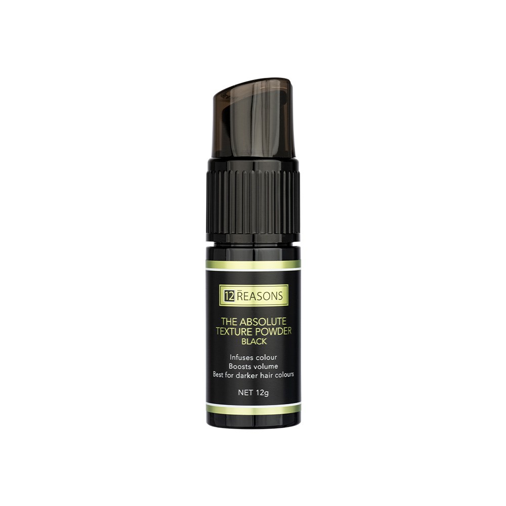 This is 12Reasons The Absolute Texture Powder Black. Infuse flat, limp hair with instant volume and texture. Best suited to darker hair colours, this precision powder sprays with zero mess to deliver lasting volume without weighing hair down. All-day hold without stiffness. 100% vegan and never tested on animals, this powder is everything needed for easy texture and volume in mere seconds. Designed and formulated in Australia.