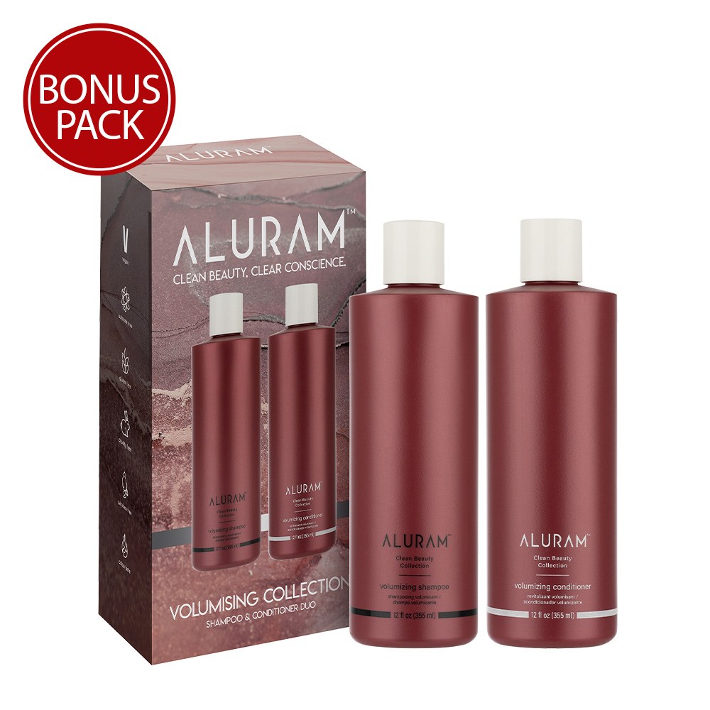 Aluram Volume Duo includes full-sized Volume Shampoo and Volume Conditioner. Volume Shampoo is infused with nourishing marula oil to take volume to the next level. Volume Conditioner harnesses marula oil for weightless hydration and thicker, fuller locks.