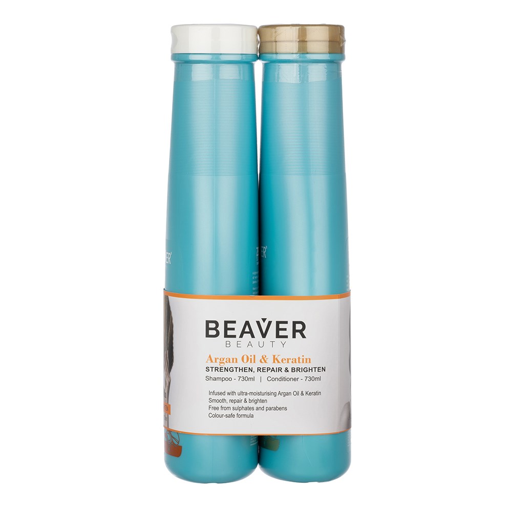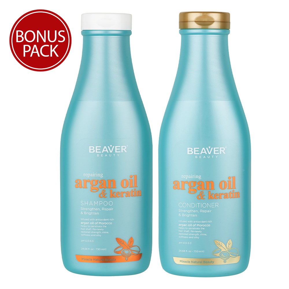 To Use: Apply Beaver Argan Oil Keratin Repairing Shampoo to wet hair and gently massage. Rinse thoroughly. Squeeze excess water from hair and spread Beaver Argan Oil Keratin Repairing Conditioner evenly onto damp hair. Rinse thoroughly.