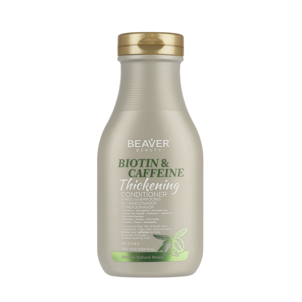 To Use: After shampooing with Beaver Biotin and Caffeine Thickening Shampoo, apply Beaver Biotin and Caffeine Thickening Conditioner generously to hair, working through to ends. Wait 3 - 5 minutes. Rinse thoroughly.