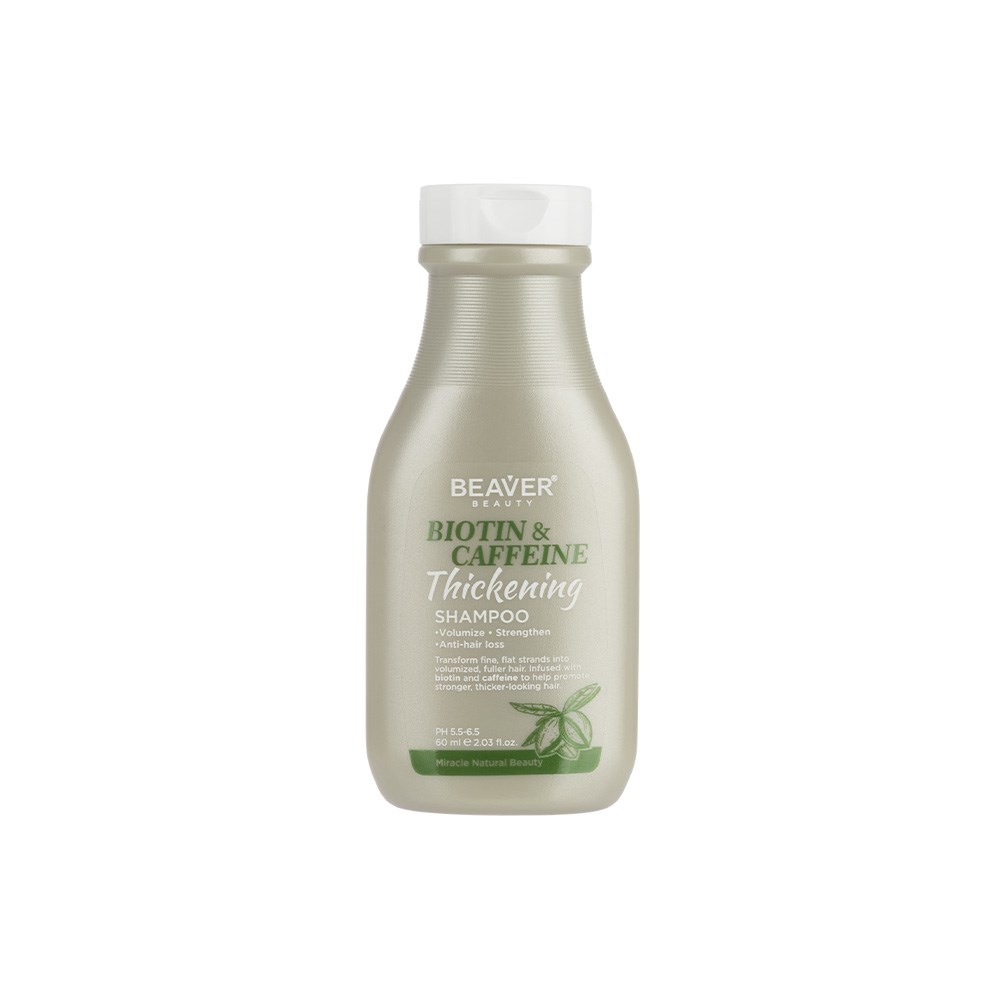 Help transform lifeless locks into volumised, thicker-looking hair. Beaver Biotin and Caffeine Thickening Shampoo 60ml is an anti-breakage formulation which strengthens and fortifies. Enriched with biotin and caffeine, hair is left nourished, stronger and more resilient. Gently cleanses while promoting volume and helping to prevent breakage. Free from sulphates and parabens.