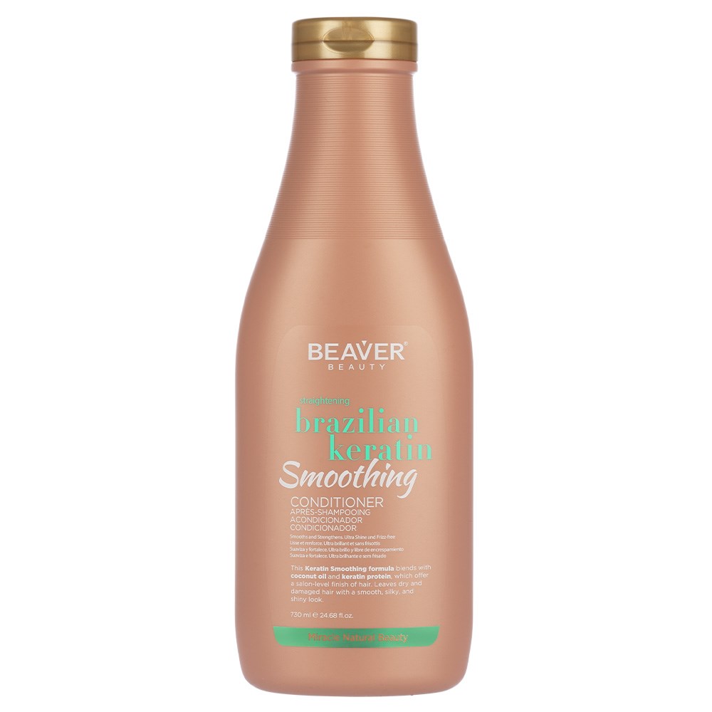 On the search for smoothness, reduced frizz and repair? Beaver Brazilian Keratin Smoothing Conditioner 730ml is the answer. This keratin smoothing conditioner harnesses coconut oil and keratin protein to deliver a salon-finish look. Dry, damaged hair is left silky smooth, enhanced with strength and manageability. Good riddance to pesky flyaways and welcome to nourished strands. Detangles and hydrates while adding lots of shine.