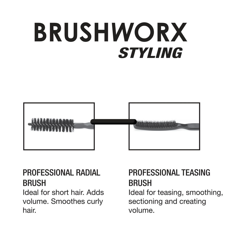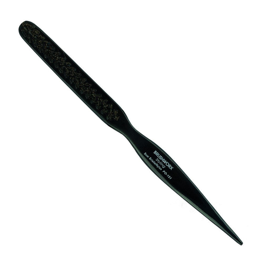 Prep hair for upstyling with the Brushworx Styler Teasing Brush. Bristles grip without harsh pulling, and create a super smooth finish over the teased section without any visible ‘teasing marks’ after brushing out. Brushworx Styler Porcupine 3 Row Teasing Hair Brush - Black features a heat resistant wooden handle for greater durability. Ideal for medium to coarse hair textures.