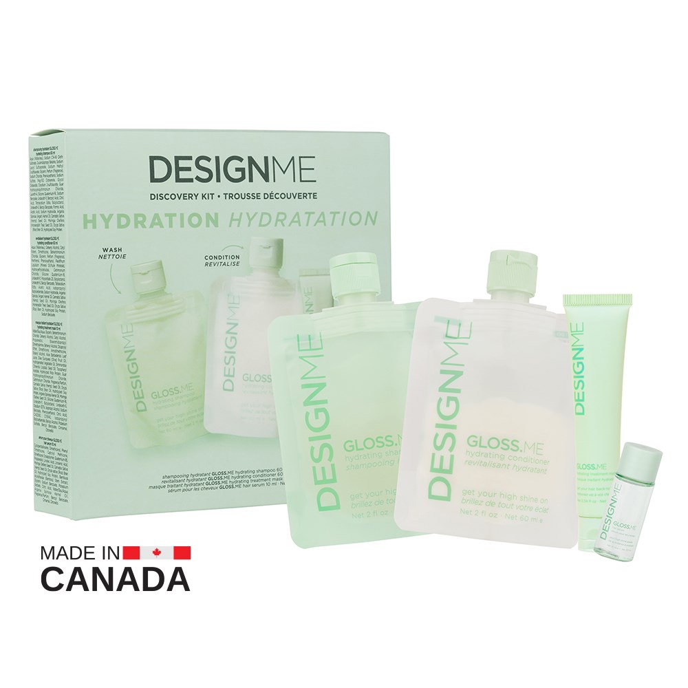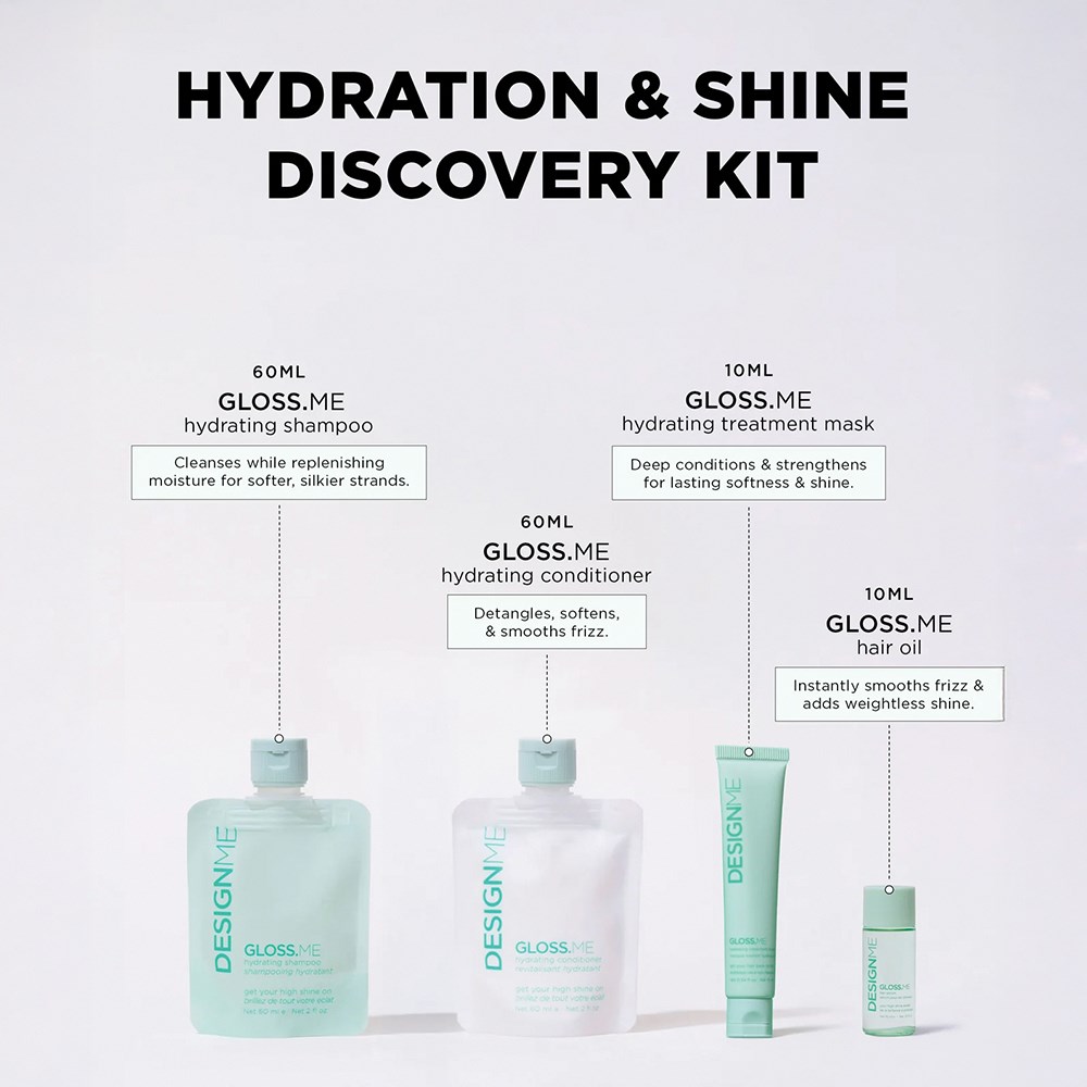 A limited edition kit, perfect for discovering a stylist-approved routine for hydrated, strengthened locks. DESIGNME Discovery Kit Hydration includes Gloss.ME Hydrating Shampoo, Conditioner, Treatment Mask and Hair Serum. Infused with nourishing moringa seed and argan oil, this deeply moisturising kit leaves strands smoother, shinier and stronger. All products are free from SLS, SLES and parabens. 100% vegan and cruelty-free.
