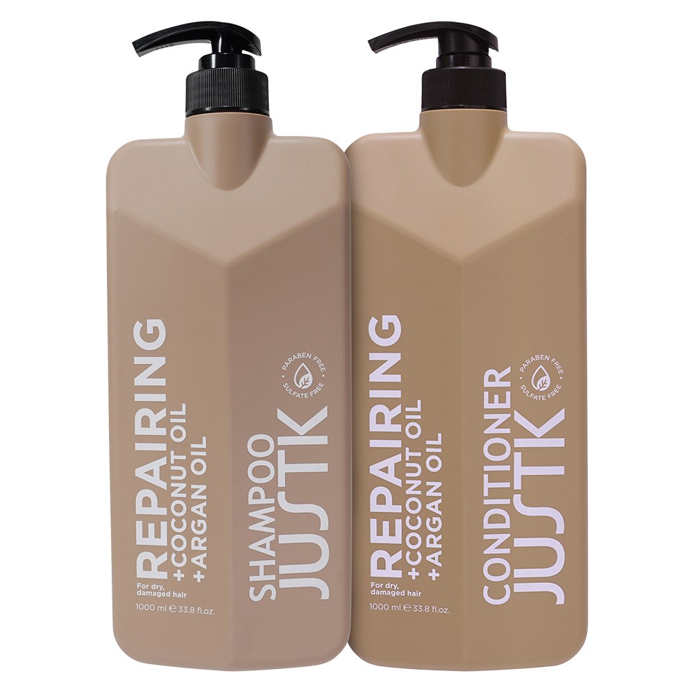 From woeful to wow, one wash at a time! Professional-grade formulas which solve all the problems of the hair rainbow. Select JustK Repairing Shampoo 1L for rich hydration and essential repair. Infused with coconut oil, argan oil and hyaluronic acid, this sulphate-free, paraben-free shampoo strengthens and nourishes. Gently cleanse dry, damaged hair while hydrating from within. Amazing strength is affordable!