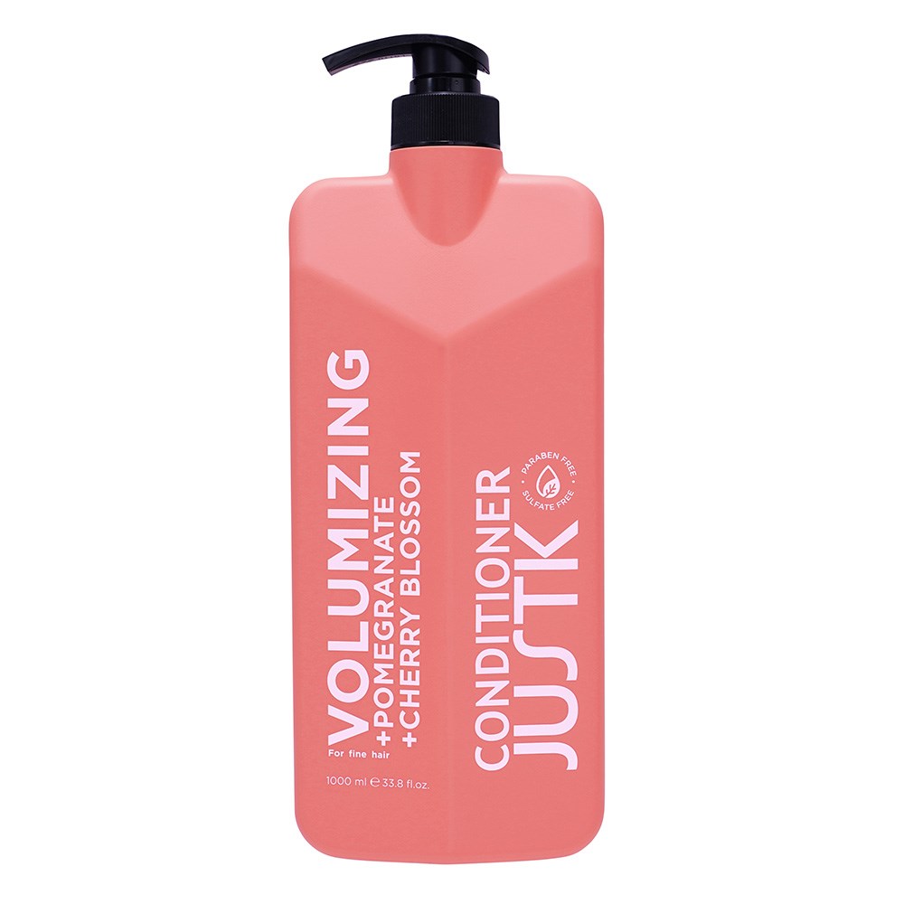 From woeful to wow, one wash at a time! Professional-grade formulas which solve all the problems of the hair rainbow. Select JustK Volumising Conditioner 1L for airy bounce and weightlessness. Infused with pomegranate and cherry blossom, this sulphate-free, paraben-free conditioner for fine hair creates the appearance of thicker, fuller hair. Detangle and nourish while promoting a lifted look. Amazing volume is affordable!