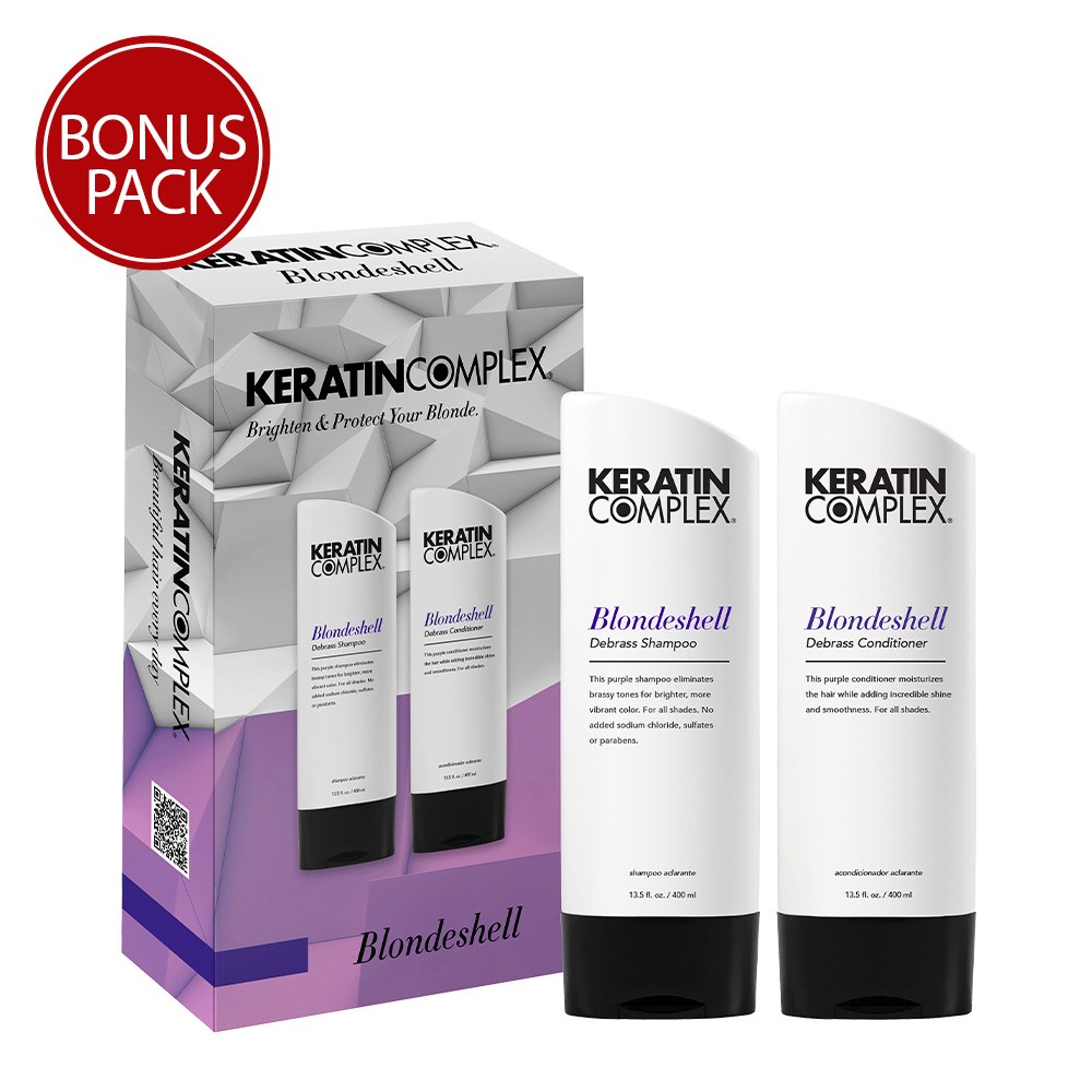 Give the gift of brightening and protecting blonde hair. Keratin Complex Blondeshell Duo includes full-sized Blondeshell Shampoo and Conditioner for gorgeous blonde every day. Perfect for all hair types, including blonde, grey and colour-treated hair, this is the gift which keeps on giving.