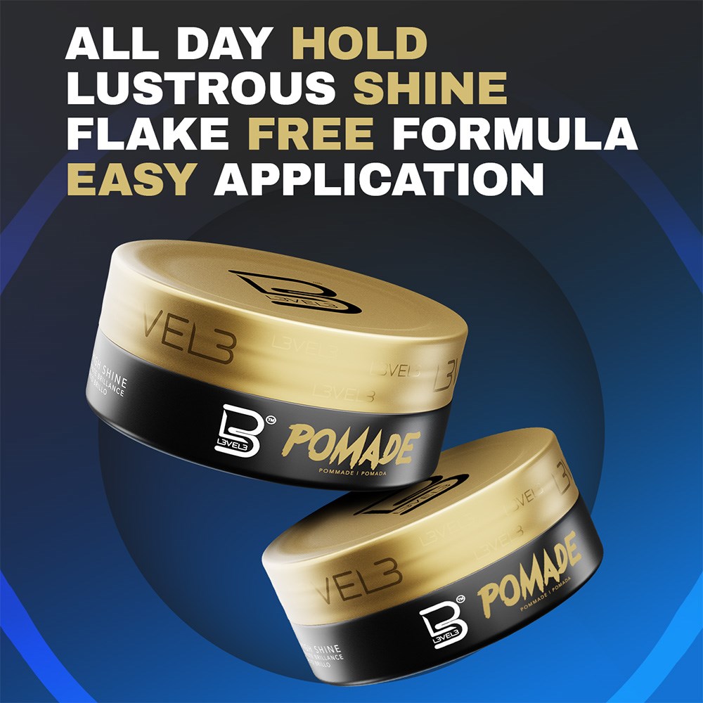 To Use: Place the desired amount of L3VEL3 Hair Styling Pomade onto the palm of your hands and rub it in circular motions to warm it up. Apply evenly throughout hair into the desired style.