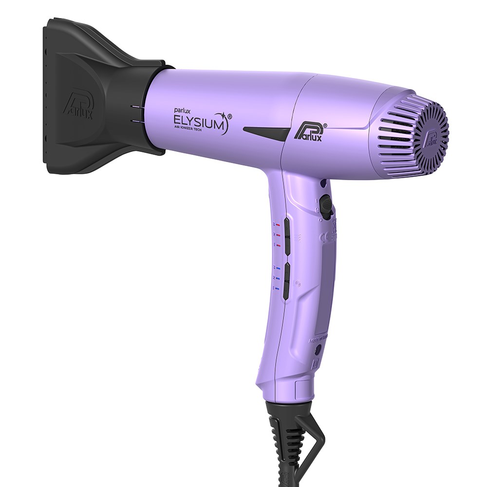 The first Parlux digital mini Hair Dryer. Designed to satisfy the demands of professionals, Parlux Elysium Hair Dryer and Diffuser Lilac is a futuristic experience. With exceptional reliability, Parlux Elysium Hair Dryer is compact, light and powerful. Professional digital oversized mini-motor delivers a powerful 2,300 watts and 80m3/h airflow. 3 speed and 3 temperature settings for 9 versatile combinations. Air Ionizer Tech ionic technology for smooth, sleek results. Lightweight and ideally balanced with an ergonomic handle. Quick and easy cleaning with washable and replaceable sponge filter. Includes 3 concentrator nozzles, 2 of which are new AirFusion nozzles to optimise airflow for faster, more precise styling with added shine. Also includes Magic Compact Special Diffuser.