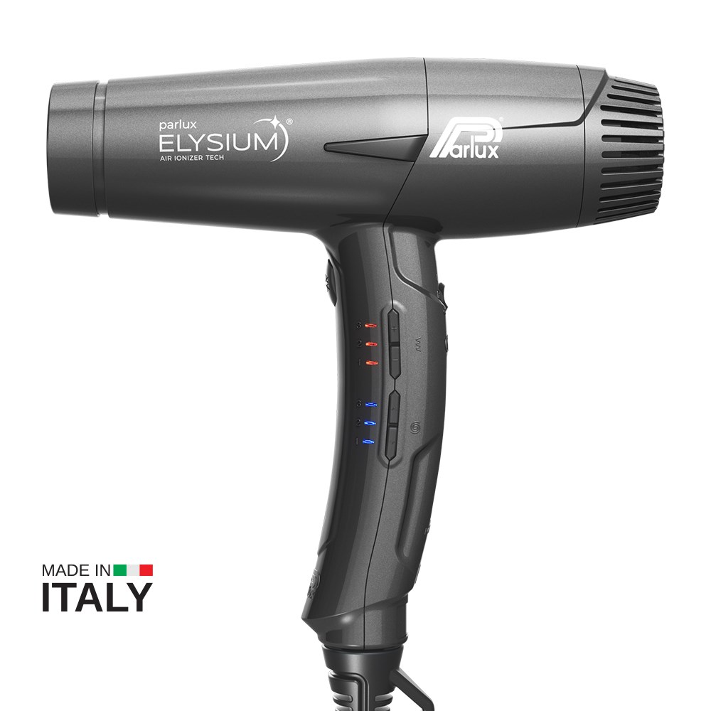 The first Parlux digital mini Hair Dryer. Designed to satisfy the demands of professionals, Parlux Elysium Hair Dryer Titanium is a futuristic experience. With exceptional reliability, Parlux Elysium Hair Dryer is compact, light and powerful. Professional digital oversized mini-motor delivers a powerful 2,300 watts and 80m3/h airflow. 3 speed and 3 temperature settings for 9 versatile combinations. Air Ionizer Tech ionic technology for smooth, sleek results. Lightweight and ideally balanced with an ergonomic handle. Quick and easy cleaning with washable and replaceable sponge filter. Includes 3 concentrator nozzles, 2 of which are new AirFusion nozzles to optimise airflow for faster, more precise styling with added shine. Made in Italy.