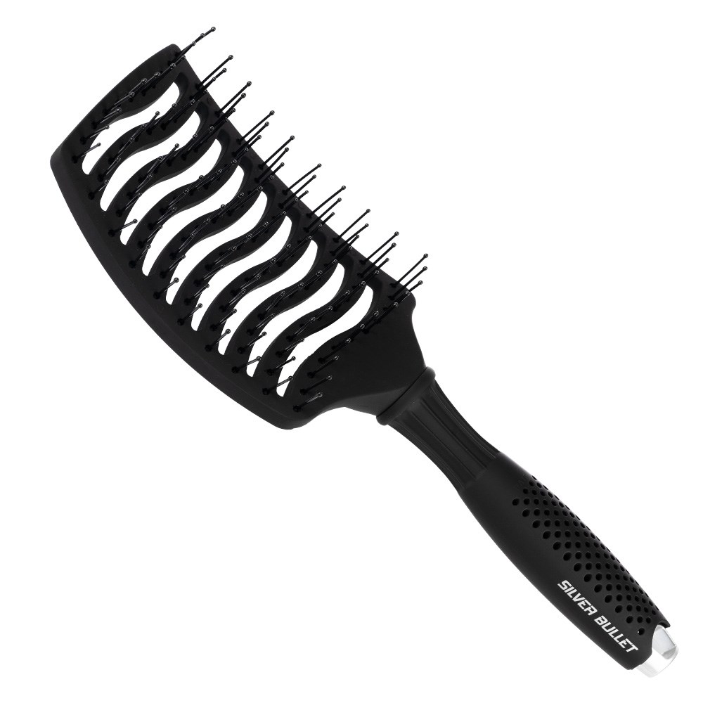 Hair which feels as smooth and soft as velvet. Silver Bullet Black Velvet Curved Vent Paddle Hair Brush is perfect for detangling, smoothing and drying. The vented design speeds up blow-drying and styling to enhance your efficiency, while the curved head contours to the scalp for improved comfort. Featuring durable nylon bristles, this brush delivers luxurious results with ease.