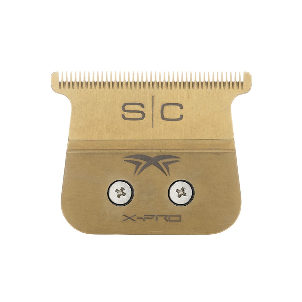 Replacement trimmer blade set for StyleCraft by Silver Bullet Saber, Rebel and Rogue Hair Trimmers. Includes gold titanium wide fixed blade and black diamond DLC deep tooth cutting blade. Rust-free and maintains sharpness longer.