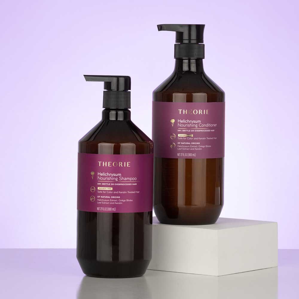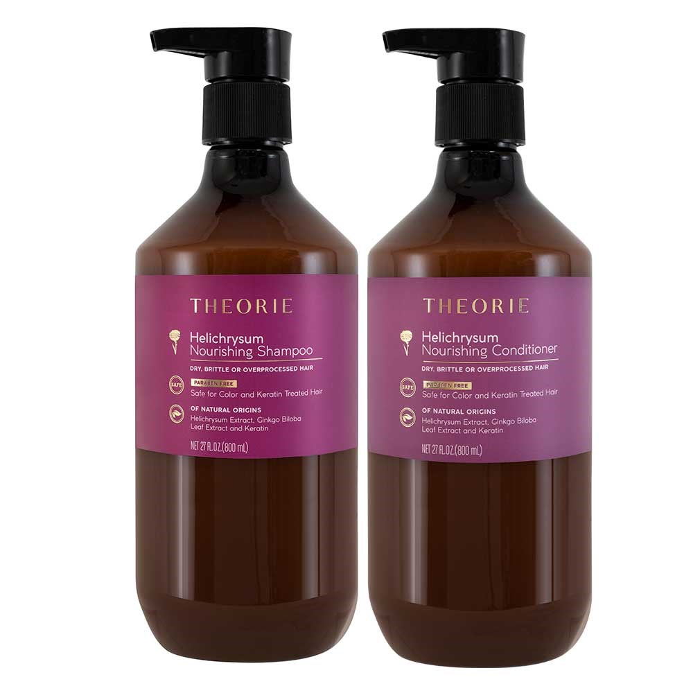 To Use: Apply Theorie Helichrysum Nourishing Shampoo liberally to wet hair. Lather. Rinse. Follow with Theorie Helichrysum Nourishing Conditioner by applying liberally from mid-shaft to ends. Condition. Rinse.