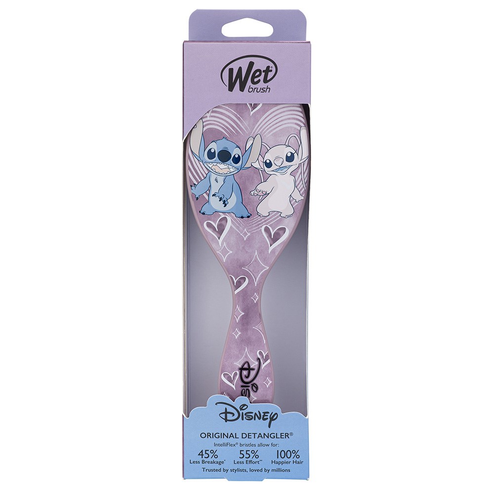 The original, award-winning brush which helps hair stay strong! WetBrush Disney Love Detangler Stitch and Angel gently loosens knots on wet or dry hair without pulling or snagging. The moment you use it, you’ll feel the difference and never want to try another detangling hair brush again. Exclusive, ultra-soft IntelliFlex bristles glide through tangles on all hair types with ease. Minimise pain and protect against split ends and breakage. Brush with less force so you can detangle with less damage to hair. We love to detangle with limited edition Wet Brush Stitch and Angel!