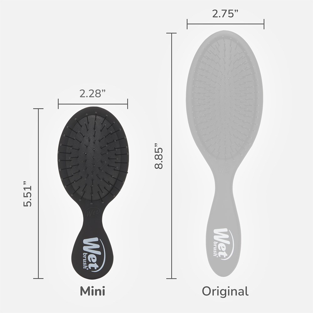 Boldly detangle with this adorable on-the-go brush! WetBrush Frost Mini Detangler Black helps hair stay strong and healthy-looking. Gently loosen knots on wet or dry hair, without pulling or snagging. Exclusive, ultra-soft IntelliFlex bristles glide through tangles on all hair types with ease. The moment you use it, you’ll feel the difference and never want to try another hair brush again. Kids love it too!