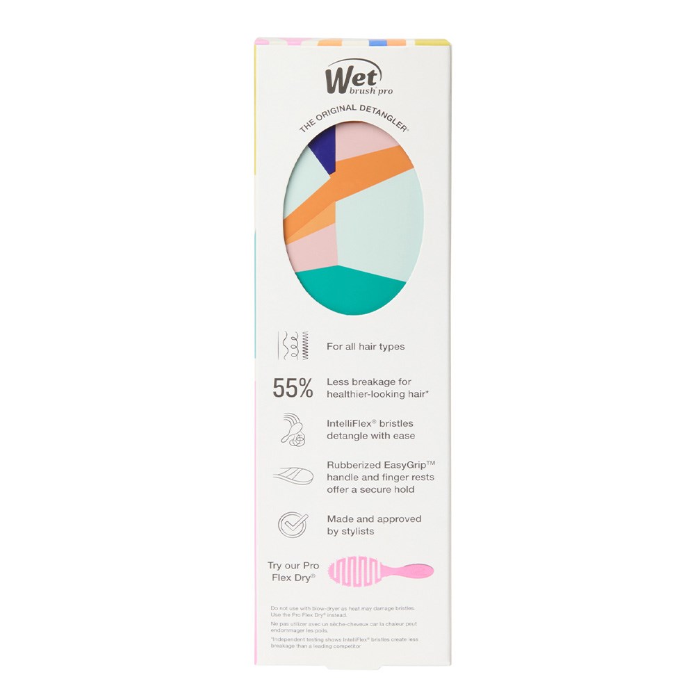 Play your ace! WetBrush Pro Artful Ace Detangler features a limited edition abstract print in Flag Up. This is the world famous, award-winning Original Detangler redesigned by stylists for stylists. Revolutionary Wet Brush IntelliFlex bristles diffuse knots on all hair types, wet or dry, gliding through tangles with less effort, less pain and over 55%* less breakage. Ergonomically advanced with finger rests and rubberised EasyGrip handle for more comfort and control.