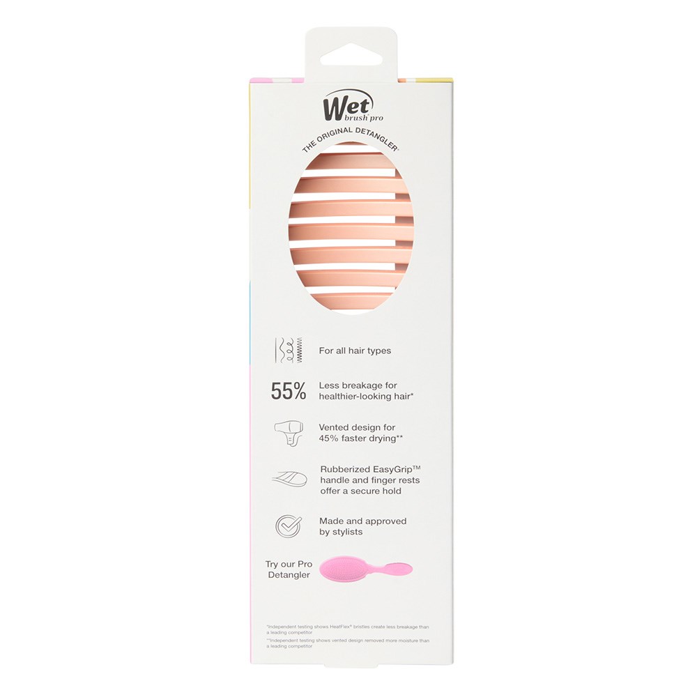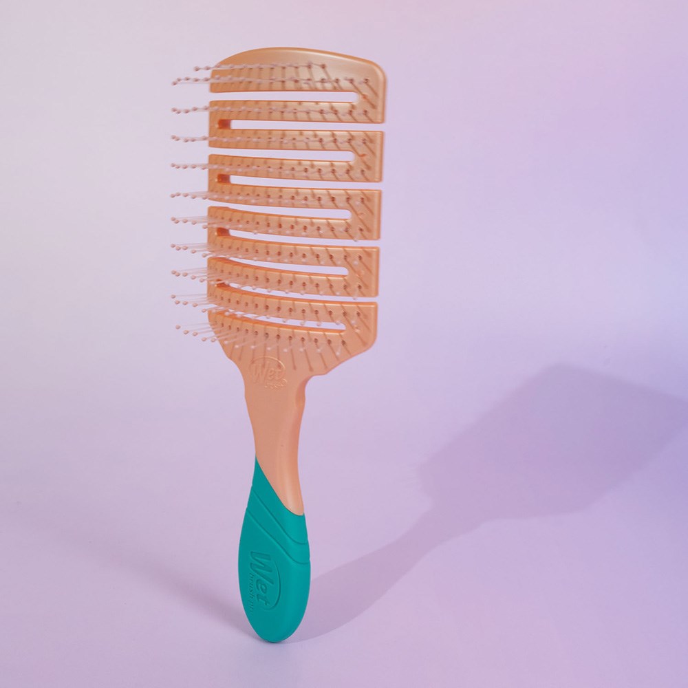 Stylists’ fave way to faster hair drying. WetBrush Pro Artful Ace Flex Dry Paddle Flag Up features a flexible vented paddle design to speed up dry time while contouring to the scalp for comfort. Wet Brush HeatFlex bristles are heat resistant and safe to use with a blow-dryer. OmniFlex brush head flexes in every direction to contour to scalp. This hair brush has a 20% larger surface area for faster styling. Limited edition design in Flag Up.