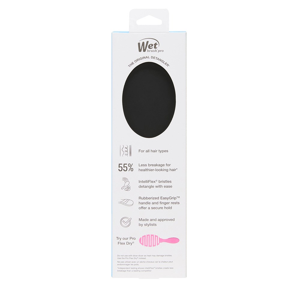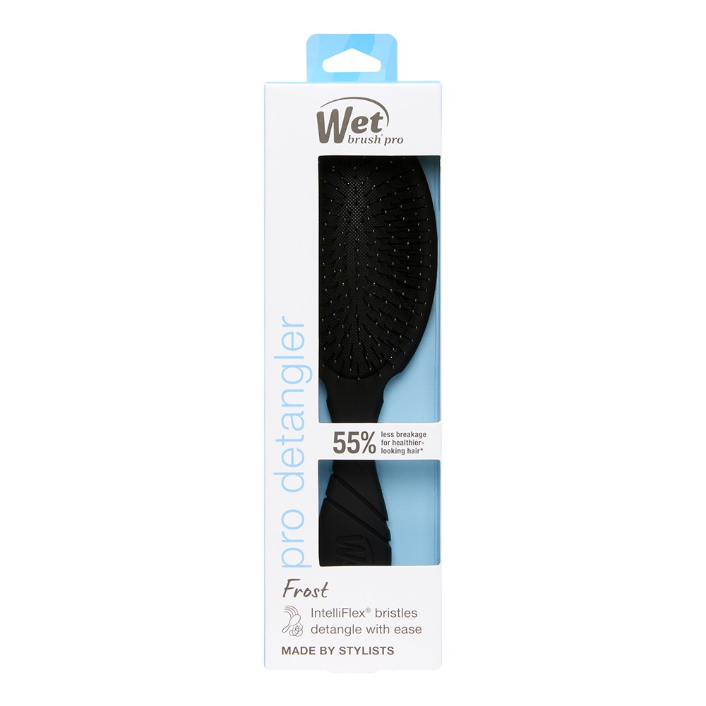 Brush boldly! WetBrush Pro Frost Detangler Black features limited edition bold colour. This is the world famous, award-winning Original Detangler redesigned by stylists for stylists. Revolutionary IntelliFlex bristles diffuse knots on all hair types, wet or dry, gliding through tangles with less effort, less pain and over 45% less breakage**. Ergonomically advanced with finger rests and rubberised EasyGrip handle for more comfort and control.