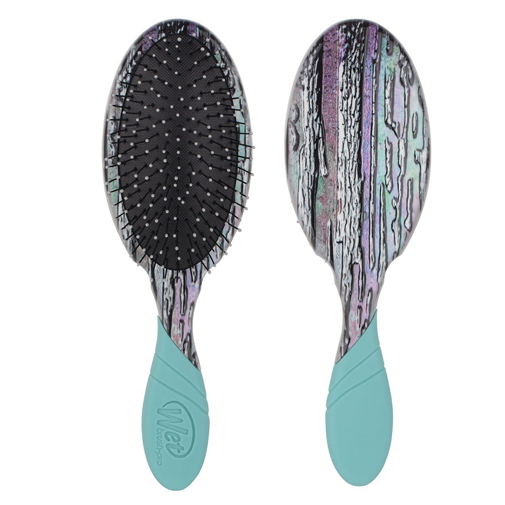 Detangling gets glamorous. The limited edition WetBrush Pro Super Slick Detangler Hair Brush Green Gleam is adorned with inspiring iridescence. Redesigned by stylists for stylists, this brush helps hair stay strong and healthy-looking. Exclusive IntelliFlex bristles loosen knots and tangles on wet or dry hair, without pulling or snagging. Ergonomically advanced design features finger rests and rubberised EasyGrip handle for more comfort and control, even with wet hands.