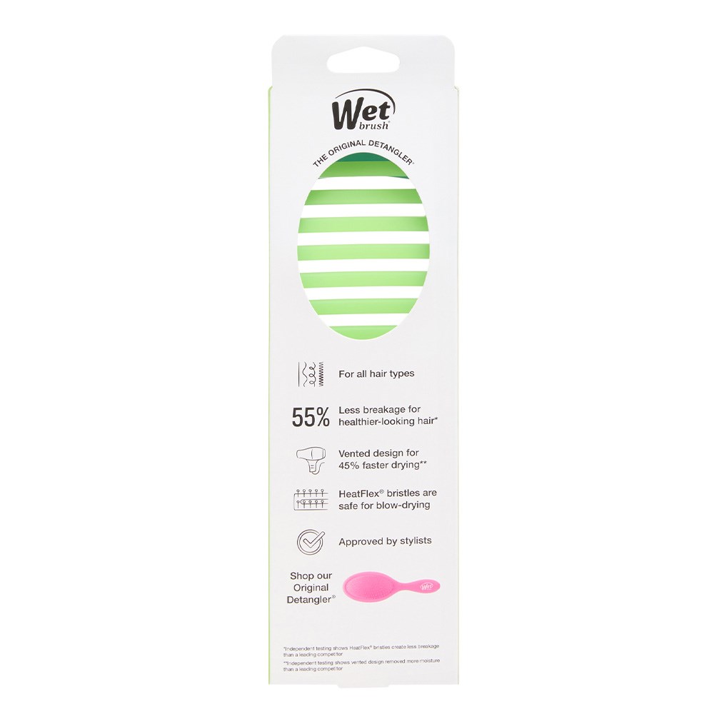 Meet the WetBrush Summer Quenchers Speed Dry Lime. Dry hair without drying it out. The Speed Dry’s vented design speeds up drying time by allowing moisture to escape faster. Heat-resistant Wet Brush HeatFlex bristles gently detangle while blow-drying. Skip the extra heat and avoid damage, helping to keep hair happier. Brush design contours to scalp for extra comfort. Limited edition.