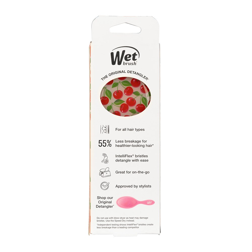 Sweetly detangle with this adorable on-the-go brush! WetBrush Tutti Fruitti Mini Detangler Cherry helps hair stay strong and healthy-looking. Gently loosen knots on wet or dry hair, without pulling or snagging. Exclusive, ultra-soft IntelliFlex bristles glide through tangles on all hair types with ease. The moment you use it, you’ll feel the Wet Brush difference and never want to try another hairbrush again. Kids love it too! Limited edition in Cherry.